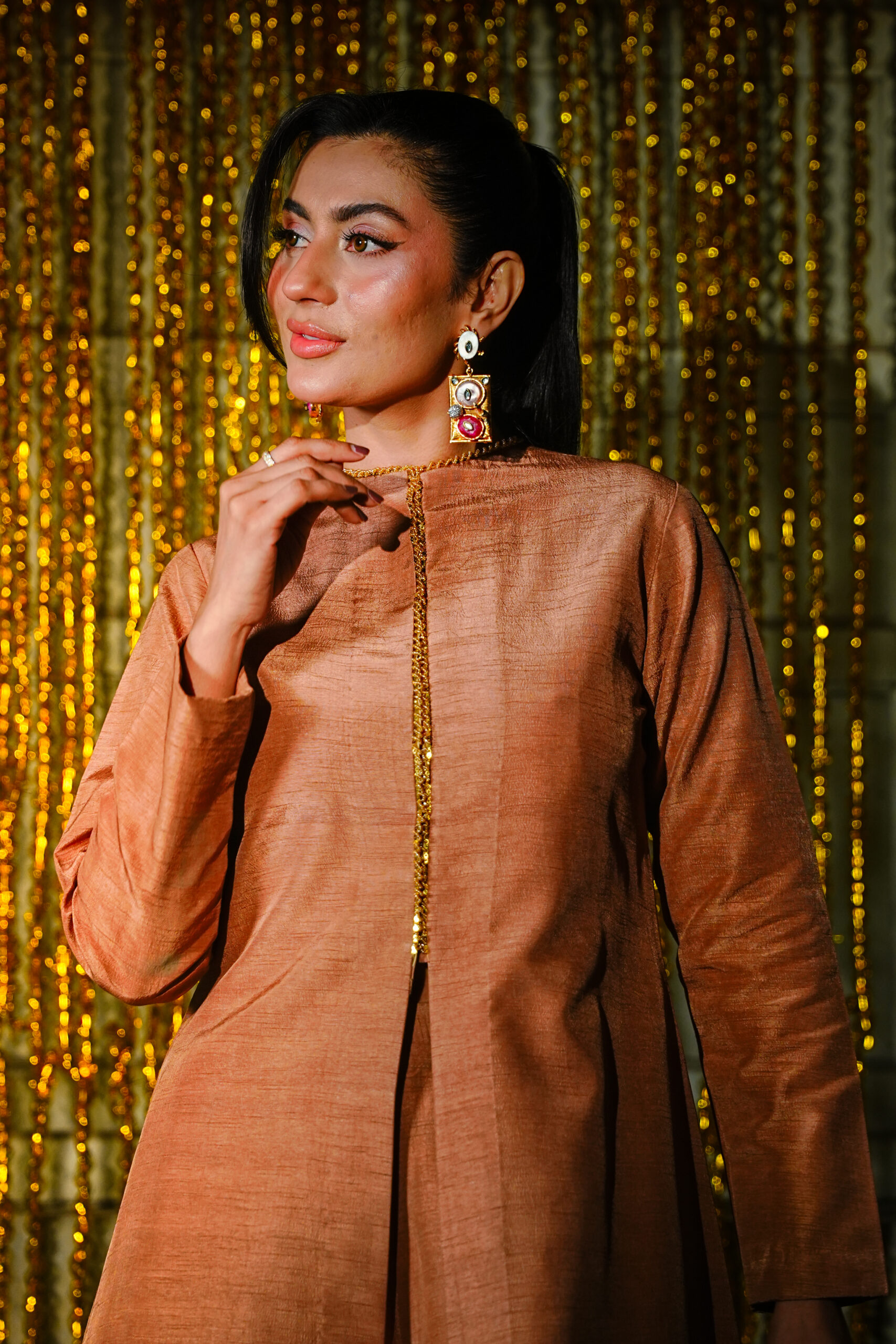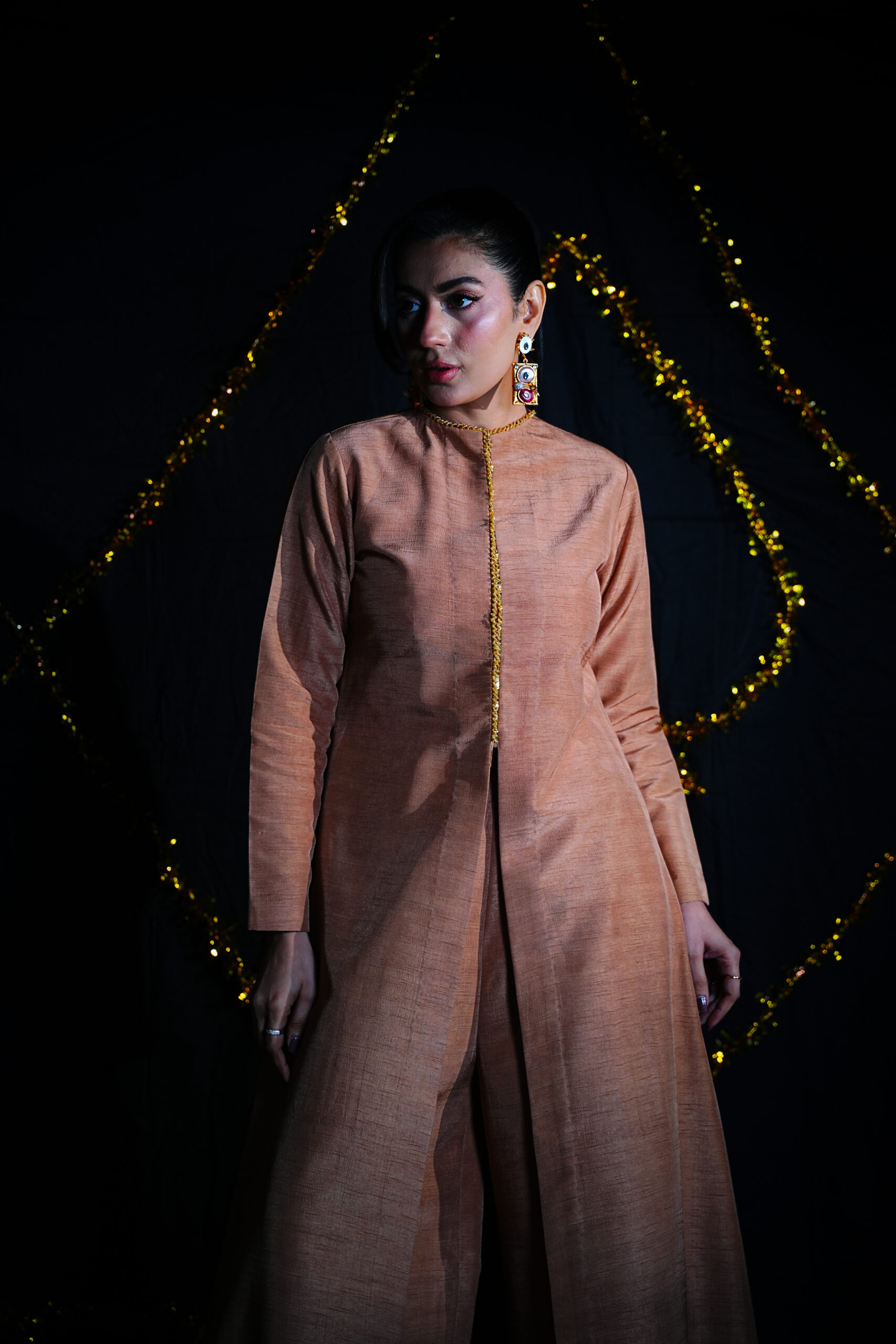 Crafted in premium Korean raw silk, this elegantly stitched shirt and trouser set defines effortless luxury, refined cuts, and timeless sophistication — perfect for a graceful, elevated look.